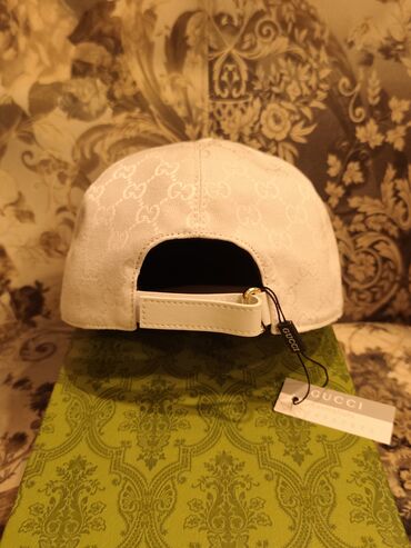 - Детали: изогнутый козырёк, аккуратные декоративные строчки, регулируемая задняя застёжка с металлической фурнитурой и кожаным элементом, фирменные ярлыки GUCCI.