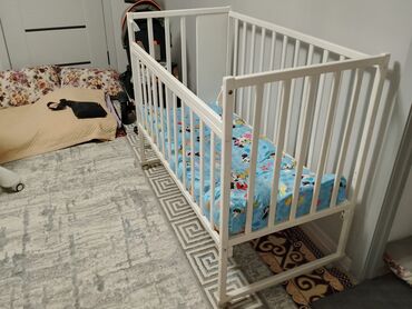 Белая детская кроватка с высокими бортиками и прочными рейками