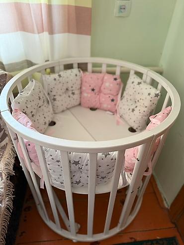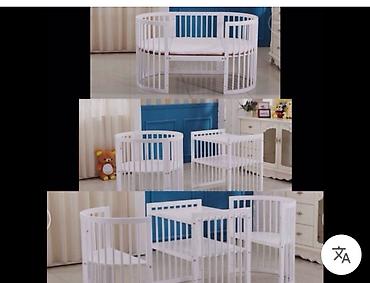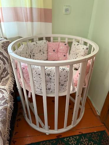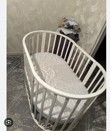 Трансформируемая детская кроватка 7-в-1, белая. Без бортиков, имеется большой овальный матрац с наматрасником. состояние хорошее.