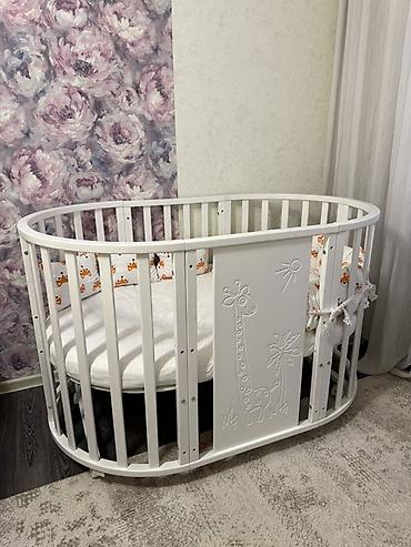 - Форма: легко перестраивается из круглой люльки для новорождённого в овальную кроватку для подросшего ребёнка.