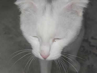 Белая домашняя кошка. - Порода: беспородная (дворянка) - Окрас: полностью белый, короткая шерсть, бархатистая - Глаза: светлые, миндалевидные - Уши: аккуратные, розовые внутри - Возраст: молодой ...