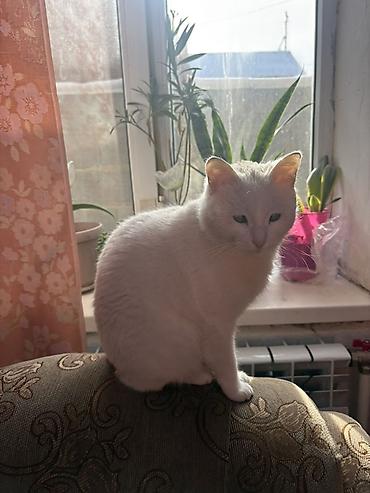Белая домашняя кошка.