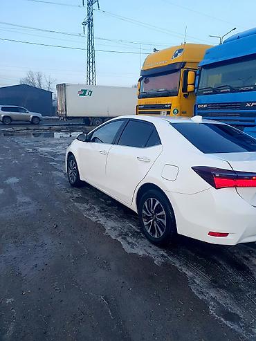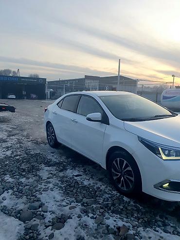 Белый седан Toyota Corolla с элегантным дизайном, сочетающим плавные линии кузова и современную оптику. Автомобиль оснащен удобным четырехдверным кузовом, обеспечивающим легкий доступ в салон. Интерьер выполнен в темных тонах с сиденьями из черной кожи, что придает салону практичность. Стильные легкосплавные диски подчеркивают динамичный облик автомобиля. Данная модель является надежным выбором для повседневных поездок.
