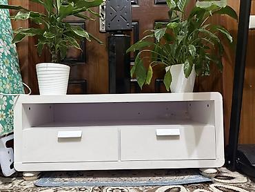 - Компактная ТВ-тумба с плавно скруглёнными краями.