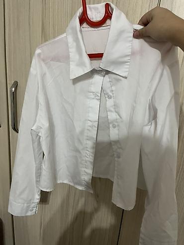 Белая укороченная рубашка с длинным рукавом почти новая. В 6 мкр можно забрать. 36 размер на 8-9 лет