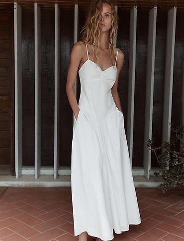 Белое летнее платье - Силуэт: приталенный корсетный верх с мягкой