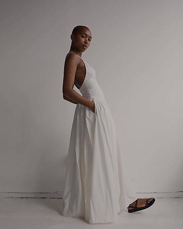 - Детали: врезные карманы по бокам, фигурные швы на линии бёдер, тонкие регулируемые бретели.