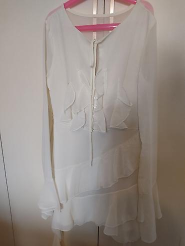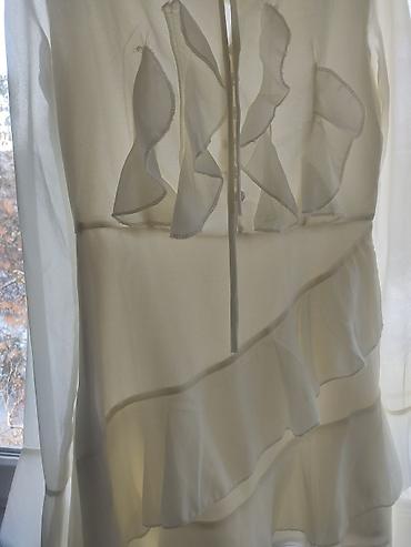 Платье макси с романтичными деталями - Длина: в пол, плиссированная юбка со свободным расклёшенным силуэтом. - Ткань: легкая полупрозрачная шифоновая фактура с подкладом (по виду), белая с нежным ...