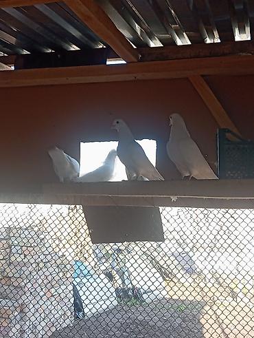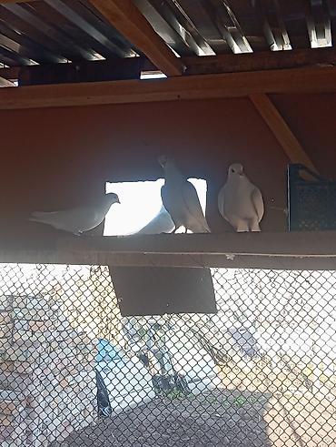 Белые голуби в вольере - Окрас: сплошной белый - Тип содержания