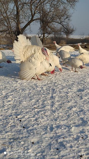 Самец по 4500 , самка по 4000 сом . Индейки разного окраса и возраста - Породы/окрасы: белые, серо-пестрые (серебристые), черные/бронзовые. - Содержатся на выгуле, адаптированы к холодному климату...