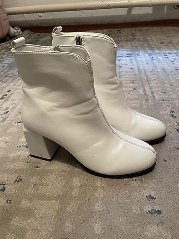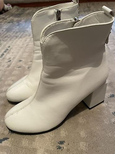 Белые женские ботильоны на устойчивом каблуке. - Материал верха