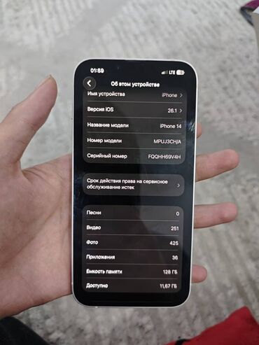 IPhone 14, 128 ГБ, темно-синий Основные характеристики: - Модель: iPhone 14 - Память: 128 ГБ (доступно около 114 ГБ) Идеал Цена по наклейке: 38000 сом