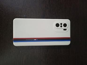 Чехол для смартфона Poco F3, бежевый, с фирменной полосой в цветах M Performance.