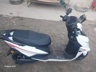 Скутер/мопед городского типа, белый, с агрессивным спортивным дизайном.