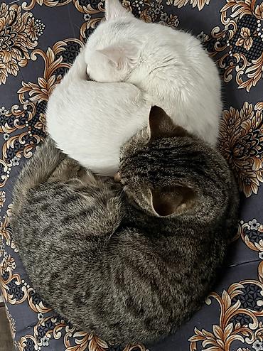 - Поведение: аккуратный, любознательный, тянется к людям, любит уютные лежанки. На фото видно, что мирно уживается с другим котом — отлично подходит для дома, где уже есть питомцы.