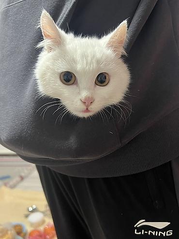 - Характер: ласковый, контактный, любит сидеть на руках и «карманах» худи, спокойно относится к нежным объятиям и поглаживаниям.