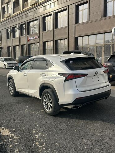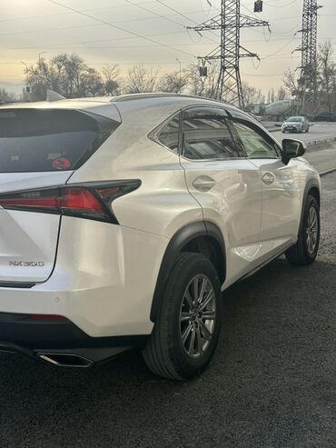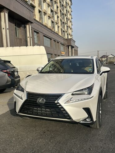 Lexus NX — городской кроссовер в белом цвете с выразительной фирменной решёткой, светодиодной оптикой и 17" легкосплавными дисками. Черные защитные накладки по периметру кузова, тонированные стекла, аэродинамичный силуэт.