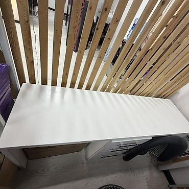 - Комплектация: столешница с боковыми опорами; под столом есть пространство для хранения коробок/оборудования.