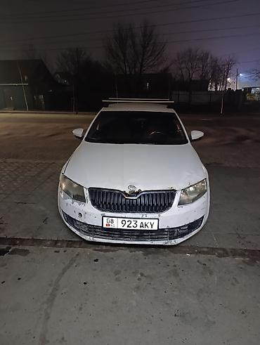 Skoda Octavia, белый седан. Кыргызстанские номера (KG), номер на фото.