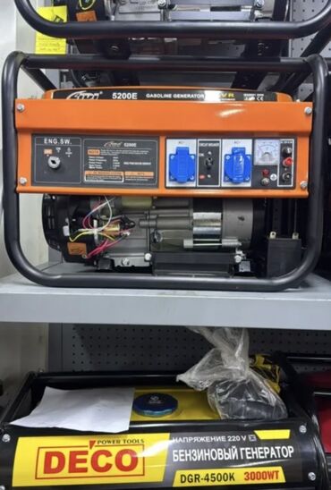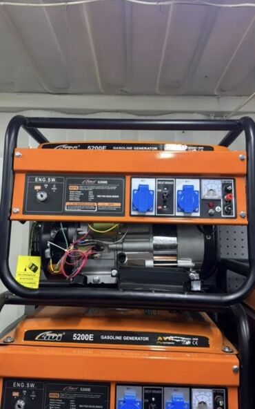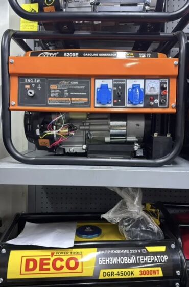 - 9200E Gasoline Generator, с автоматическим регулятором напряжения AVR. На панели: вольтметр, индикаторы, тумблеры, две розетки AC 220 В, выход 12 В DC (клеммы), автомат защиты (circuit breaker). Электростартер с аккумулятором 12V 18Ah.