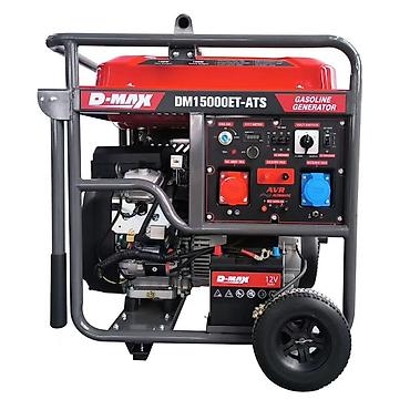 - DM15000ET‑ATS: мощный агрегат с блоком ATS, крупный альтернатор, розетки AC 220 В и 380 В (трёхфазная и однофазная группы, согласно панели).