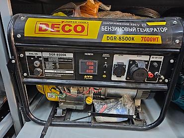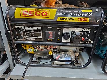 Модель: DGR-8500K (Power Tools DECO), бензиновый генератор 220 В с пиковой мощностью 7 кВт и номинальной 5 кВт, с выходом 12 В для зарядки АКБ и встроенным AVR.