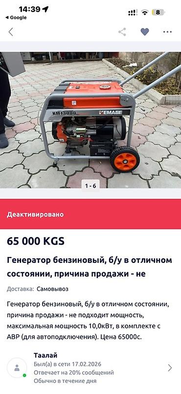 Бензиновый генератор KEMAGE KM6500 торг