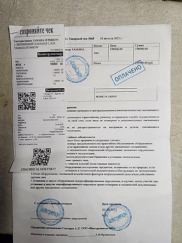 - Кассовый чек и товарный чек от 14.08.2023 на модель YAMAHA EF5500EFW (указано “ОПЛАЧЕНО”).