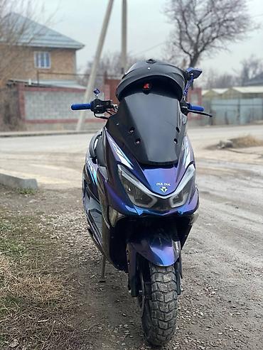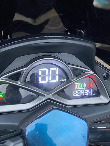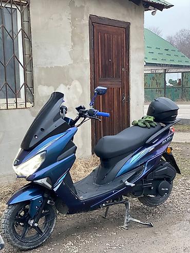 - Кузов: городской максискутер в фирменной сине‑фиолетовой окраске с аэродинамическим высоким ветровым стеклом.