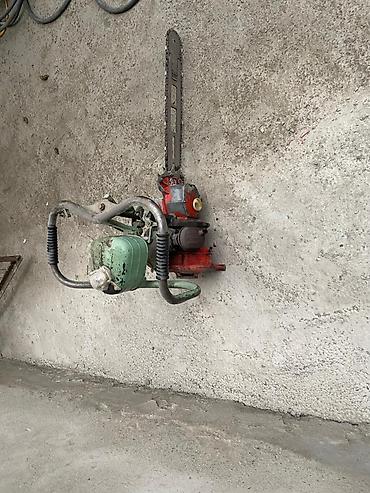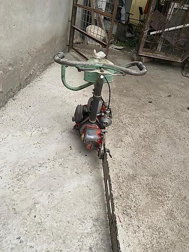 - Металлический бак сверху (зеленый), механический карбюратор, тросиковое управление газом.
