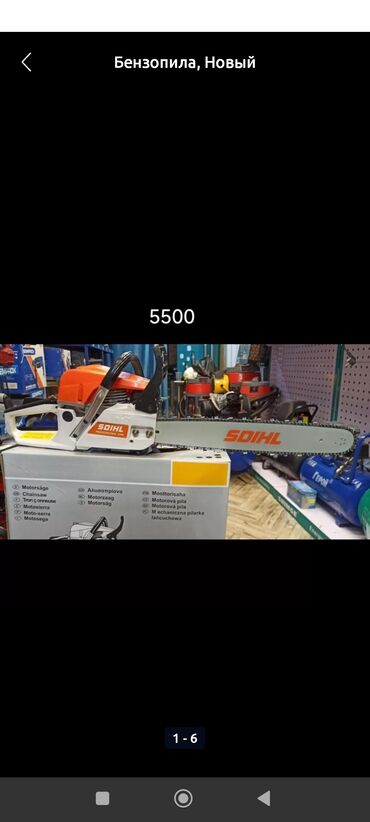 Бензопилы – новые, в коробках. На фото представлены несколько моделей.