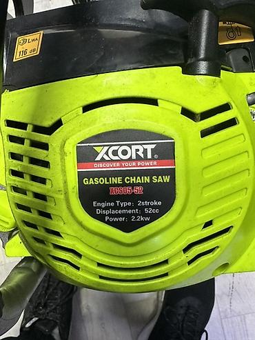 Подходит для распила дров, валки и обрезки деревьев, строительных работ. Оптимальный баланс мощности и длины шины для бытовых и полупрофессиональных задач. Цвет — салатово‑черный. На корпусе маркировка модели: KCS05‑52, надпись Gasoline Chain Saw.