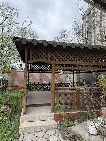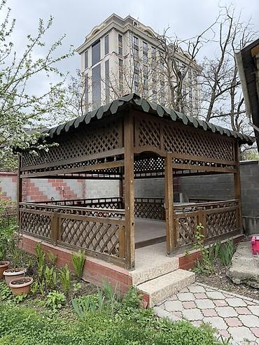 Деревянная садовая беседка с крышей и встроенной мебелью цена 50,000 сом и выше - Конструкция: стационарная A‑образная беседка с двускатной крышей. - Материал: массив древесины, элементы карка...