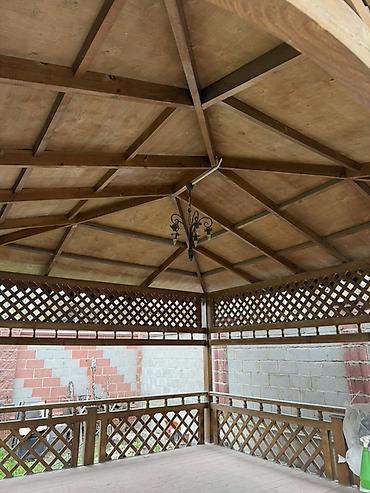 Предоставляем материалы для постройки беседки Балки Брусы Рейки И многое другое Деревянная беседка с зоной барбекю + пиломатериалы - Просторная открытая беседка из массива хвойных пород с деко...