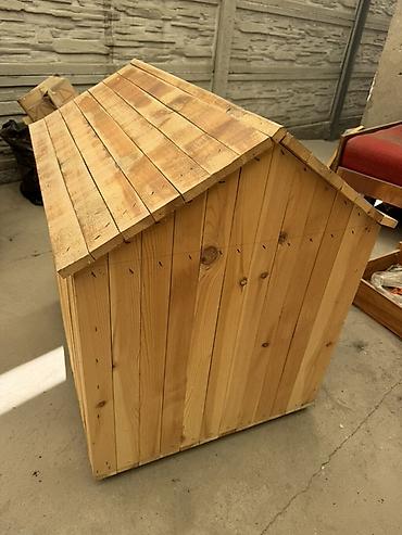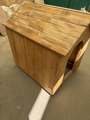 Деревянная будка для домашнего животного (собака/кот небольшого размера) - Материал: натуральная доска, сборка на саморезах. - Крыша: двускатная, покрыта листом мягкого материала (похоже на руберо...