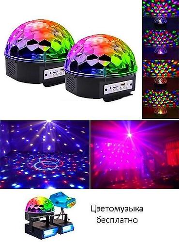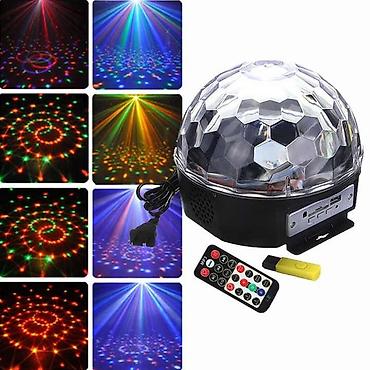В диско-шаре встроенные яркие разноцветные светодиоды, со множеством режимов работы.
