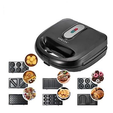 Вафельница электрическая SOKANY SK - 907 7в 1 - это многофункциональный мультипекарь, который за считанные минуты приготовит горячие бутерброды с самыми разнообразными начинками, пышные вафли, сэндвичи, печенье орешки, мадлен и пончики. Мультипекарь оснащен семью сменными пластинами, размером 12х22 см. Благодаря антипригарному покрытию каждый лист после использования легко мыть. 7 сменных панелей в комплекте: Грильница (прижимной); Орешница (как советские); Сэндвичница (обычные треугольные); Вафельница (толстые бельгийские вафли, они же венские, брюссельские); Печенница (курабье); Пончики (сушки); Мадлен (ракушка) Потребляемая мощность: 750 Вт Корпус из нержавеющей стали. Мультипекарь; Электрогриль; Вафельница; Сэндвичница;Техника для кухни; гриль электрически