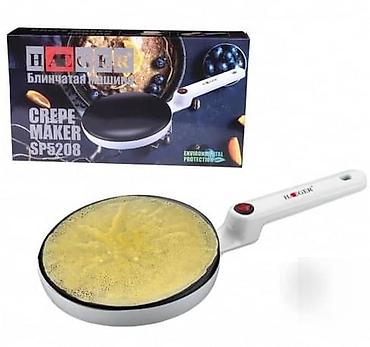 Блинница HG-5208 используется для приготовления блинов диаметром до 20 см. Работает она от электросети и включается при помощи небольшого переключателя на ручке. Благодаря антипригарному покрытию тесто не пристает к поверхности сковороды. Длинная рукоятка имеет эргономичную форму, поэтому хорошо лежит в руке и не выскальзывает при переносе.