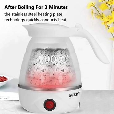 электрический чайник SK-614 дорожный складной чайник 0,7 л 600 Вт свет, складной портативный шнур питания для здоровья и безопасности отдельный нагревательный поддон из нержавеющей стали защита от сухого горения автоматическое отключение с интимной ручкой, эргономичной подсветкой кнопки.