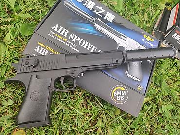 - Размер пистолета: Длинна без глушителя 19см., с глушителем 29,5см., Высота 11,5см.