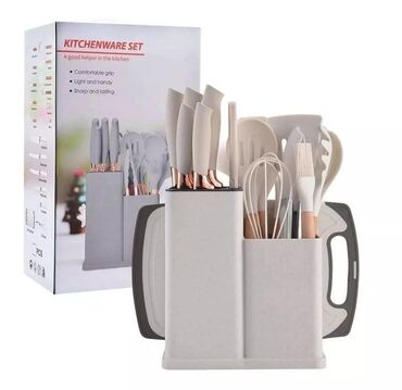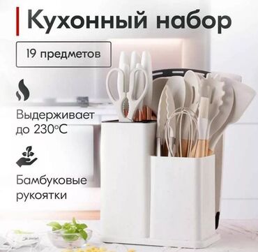 Набор ножей на деревянной подставке. В комплекте 19 предметов для кухни .