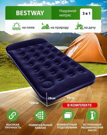 Размер: 185х76х22 см. Максимальная нагрузка: 100 кг. Надувной матрас