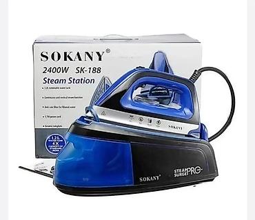 Производитель: Sokany- Модель: SK-188- Высокая скорость глажения благодаря подаче сухого высокотемпературного пара (140-150 градусов).- Мощность, Вт: 2400- Функция отпаривания: 140-150 градусов- Объём бака для воды, л: 1,2- Съемный резервуар для воды: да- Материал корпуса: пластик- Материал подошвы: имеет антипригарную керамическую поверхность- Режимы: Вертикальное отпаривание, Паровой удар. Функция сушки/пара/распыления
