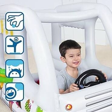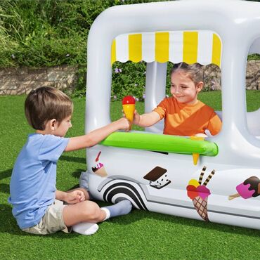 Игровой центр "Фургон" послужит прекрасным развлечением для вашего ребенка. Дети могут играть в продавцов мороженого - для этого игровой фургон оборудован надувным столом и надувными рожками мороженого.