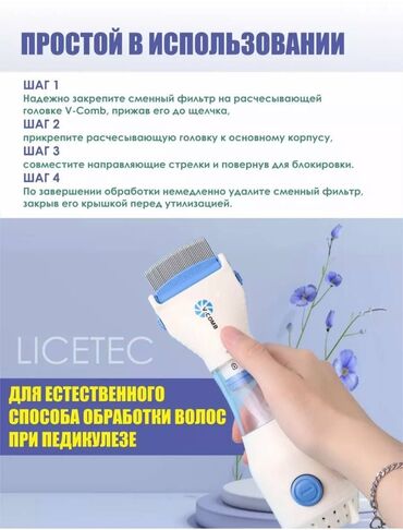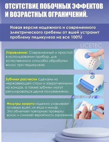 Изготовлена из нержавеющей стали с закругленными краями, а встроенный мощный всасывающий механизм позволяет ей плавно скользить по коже головы, аккуратно удаляя вшей и ловя яйца клопов.