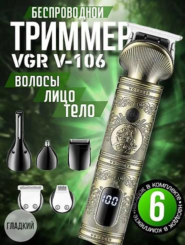 VGR Voyager V-106 6 in 1 Professional Grooming Kit - полный набор профессиональных инструментов для стрижки, включающий триммер для волос и тела, 5 сменных головок и 9 сменных гребней-насадок. Этот многофункциональный набор подходит для стрижки усов, бровей, носа и ушей, бритья лица и тела. Триммер является электрическим, беспроводным и профессиональным, обладает ЖК-цифровым дисплеем и различными насадками, обеспечивает низкий уровень шума. Он идеально подходит как машинка для стрижки волос, предлагая беспроводной набор.
