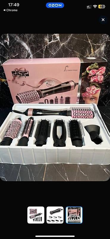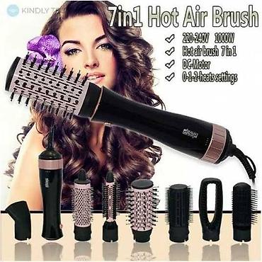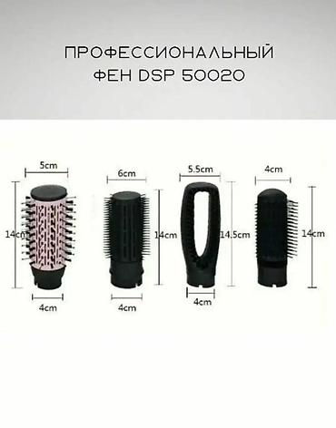 Профессиональный фен DsP 50020 7 в 1 1000W Функциональный и удобный фен отличается красивым дизайном и доступной ценой с большим набором функций. Отличается высоким качеством и надежностью, бережно сушит волосы. DsP 50020 это мощный и универсальный инструмент, с помощью которого можно не только высушить, но и аккуратно уложить ваши волосы. Благодаря шести насадкам фен превращается в универсальный стайлер для волос, которым можно как делать локоны, так и делать пышную укладку ваших волос. Благодаря мощности в 1000 Вт, выходящий воздух нагревается практически мгновенно. Вы можете регулировать температуру нагрева. Функция "холодный воздух" поможет зафиксировать прическу.Его богатый функционал удивит даже опытных стилистов. Он идеально подходит как для салонов красоты так и для домашних чудес с причёской. Весьма прост в использовании.Шесть насадок :-2 металлические круглые расчёски-круглая расчёска-прямая расчёска-щетка-концентратор.