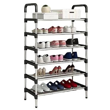 Напольная подставка для обуви для любых помещений: дом, офис, гараж, общепит. Подставка для обуви 6-полочная впишется практически в любой интерьер. На ней Вы сможете разместить до 30 пар обуви. Разборная конструкция позволяет приобрести данное изделие в коробке.