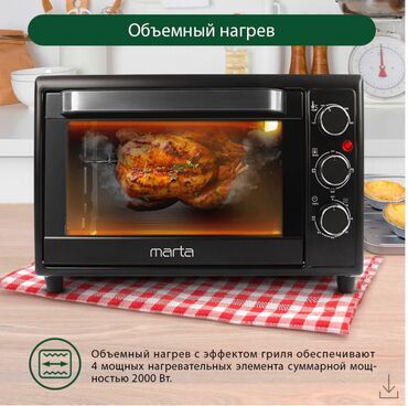 Данная модель оснащена: • 4 мощными нагревательными элементами суммарной мощностью 2000 Ватт; • Вместительной камерой с подсветкой объемом 30 литров; • 5 режимами работы; • Широким набором аксессуаров: шашлычница, вертел, эмалированный противень, решетка, поддон для крошек, ручка для извлечения противня/решетки, ручка для вертела; • Таймером со звуковым сигналом и автоматическим выключением прибора. Всё это сделает процесс приготовления горячей пищи удобным и быстрым! • Механическое управление делает простым и понятным выбор среди широкого набора настроек. • Вместительная камера объемом 32 литров позволит одновременно готовить несколько блюд и вмещает продукты большого размера, таких как целая тушка птицы, большой мясной рулет или пирог для всей семьи. Четыре мощных нагревательных элемента особенно быстро прогревают камеру, поэтому электрический духовой Авинанс поможет Вам приготовить самые вкусные горячие блюда, домашнюю выпечку с румяной корочкой и бесчисленное множество разнообразных кулинарных шедевров без потери времени. • Вы сможете выбирать способ приготовления, располагая противень или решетку на любом из трех уровней и включая один из трёх режимов нагрева (верхний, нижний, верхний + нижний). • Вертел и шашлычница с электроприводом расширят кулинарные возможности ещё больше. Будет удобно готовить курицу гриль с хрустящей корочкой, шашлыки по своим любимым домашним рецептам и овощи-гриль на шпажках, а также бесконечно экспериментировать и пробовать новые вкусы. • Встроенный таймер позволит с легкостью отслеживать время приготовления блюд, при этом, Вы сможете отвлечься на другие дела, так как по истечении установленного времени, духовой шкаф выключится автоматически, а звуковой сигнал об окончании приготовления напомнит о готовности блюда. • Надёжные компоненты прибора обеспечат длительный срок службы и бесперебойную работу. • Электрический духовой Авинанс – Ваш отличный помощник на кухне, используя который станет просто и приятно радовать себя и своих близких вкусными горячими блюдам