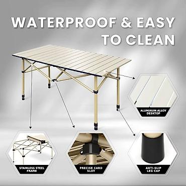 ✅ Прочная и легкая конструкция – изготовлен из высококачественного алюминиевого сплава, обеспечивающего устойчивость и долговечность. При этом вес стола остается минимальным, что облегчает его переноску.
